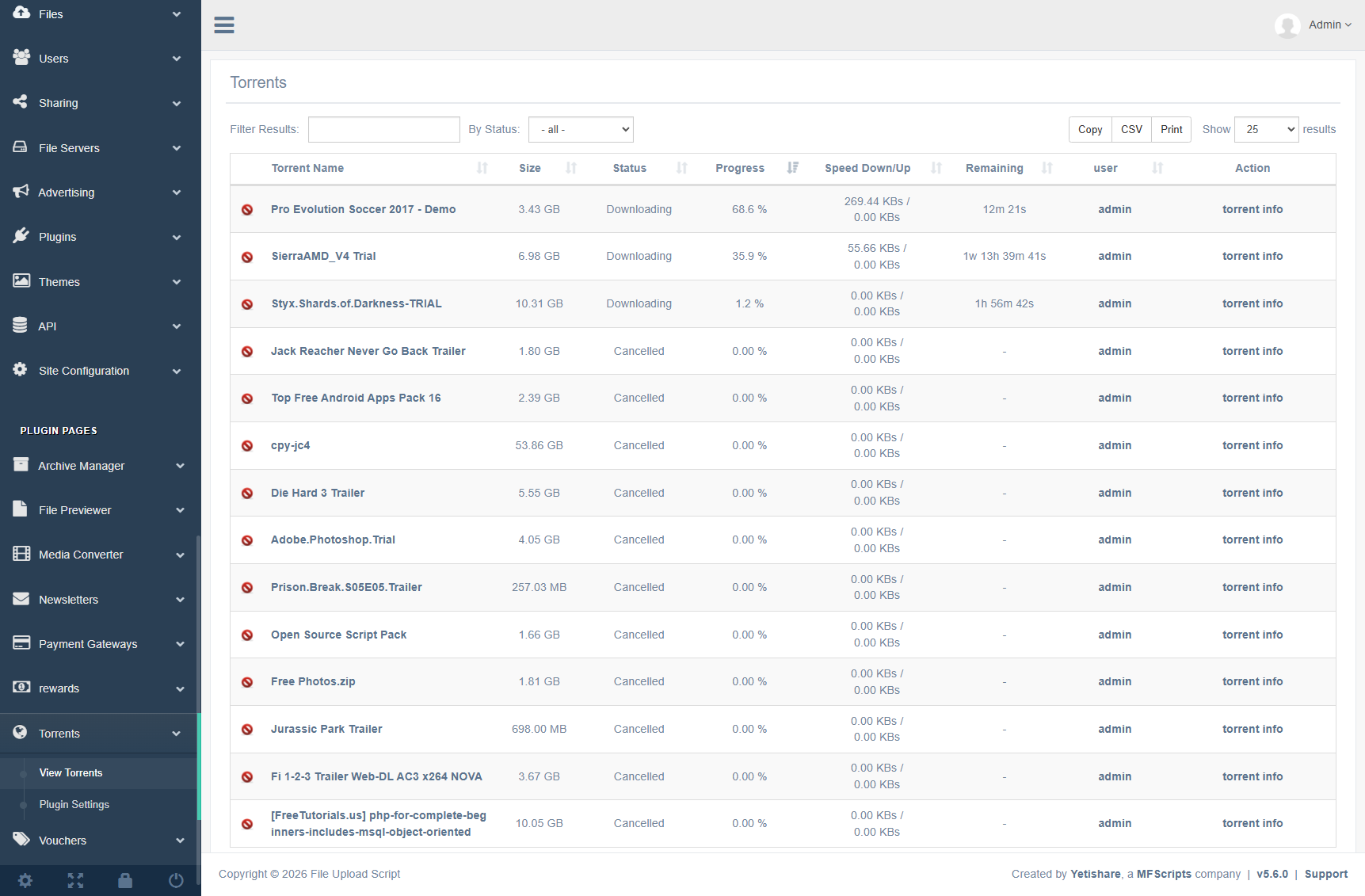 Administrative tools and configuration for the Torrent Download plugin.