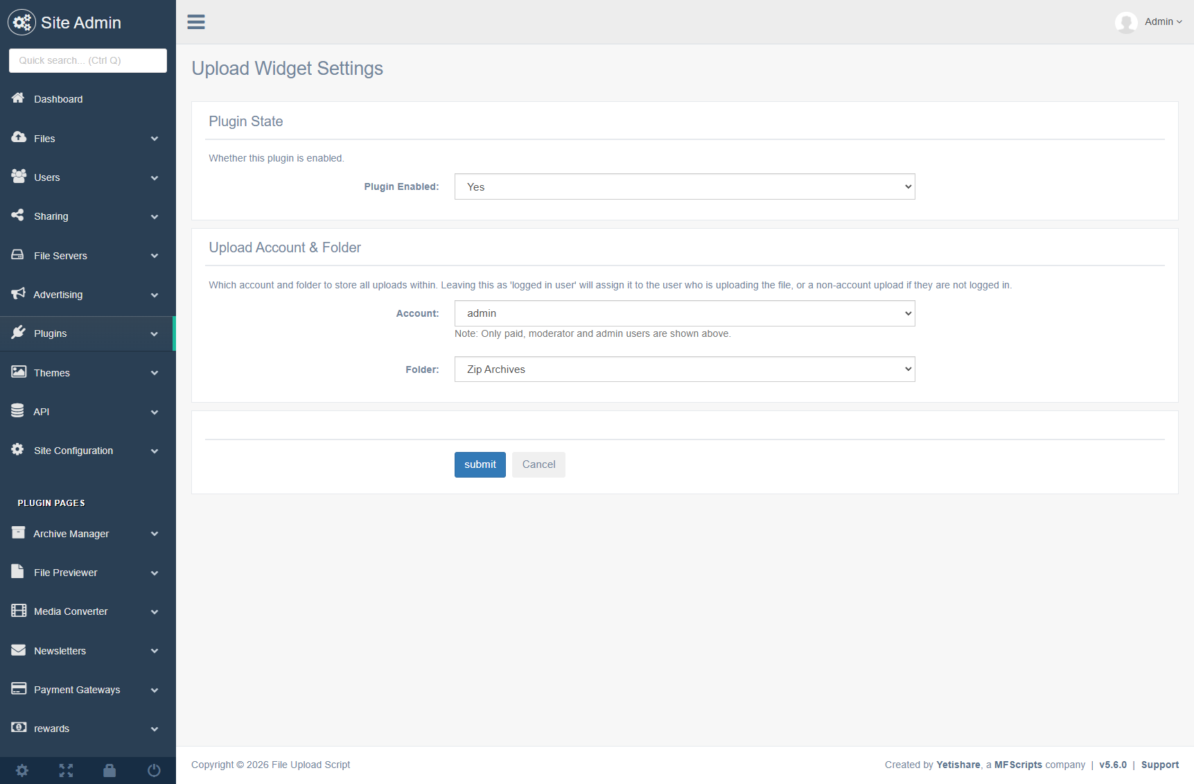 All embedded uploaders support multi-upload and use the main site upload settings for a consistent experience.
