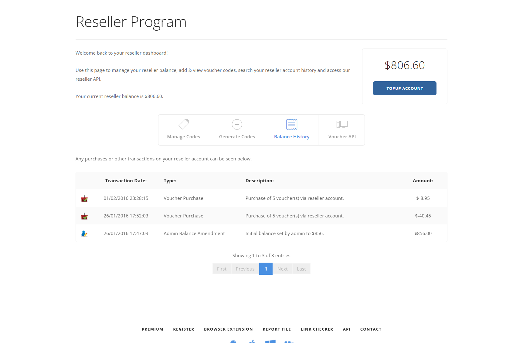 Enable your users to resell premium accounts by purchasing discounted voucher codes. Grow your user base and revenue through a dedicated reseller channel with full control over packages, pricing and volume discounts.