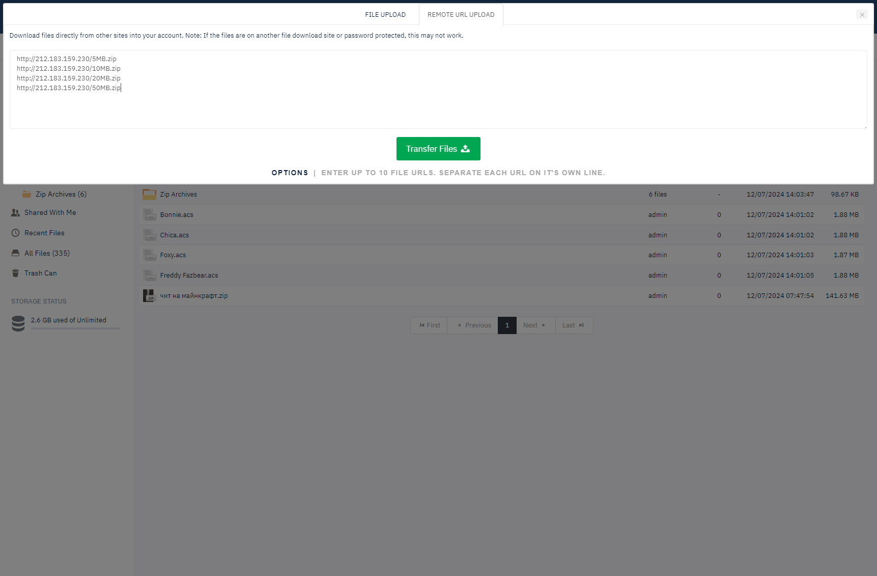 Enter multiple URLs at once for simultaneous file transfers.