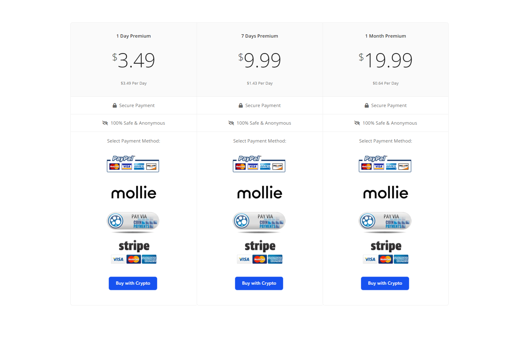 Configurable monthly subscriptions with premium level account benefits.