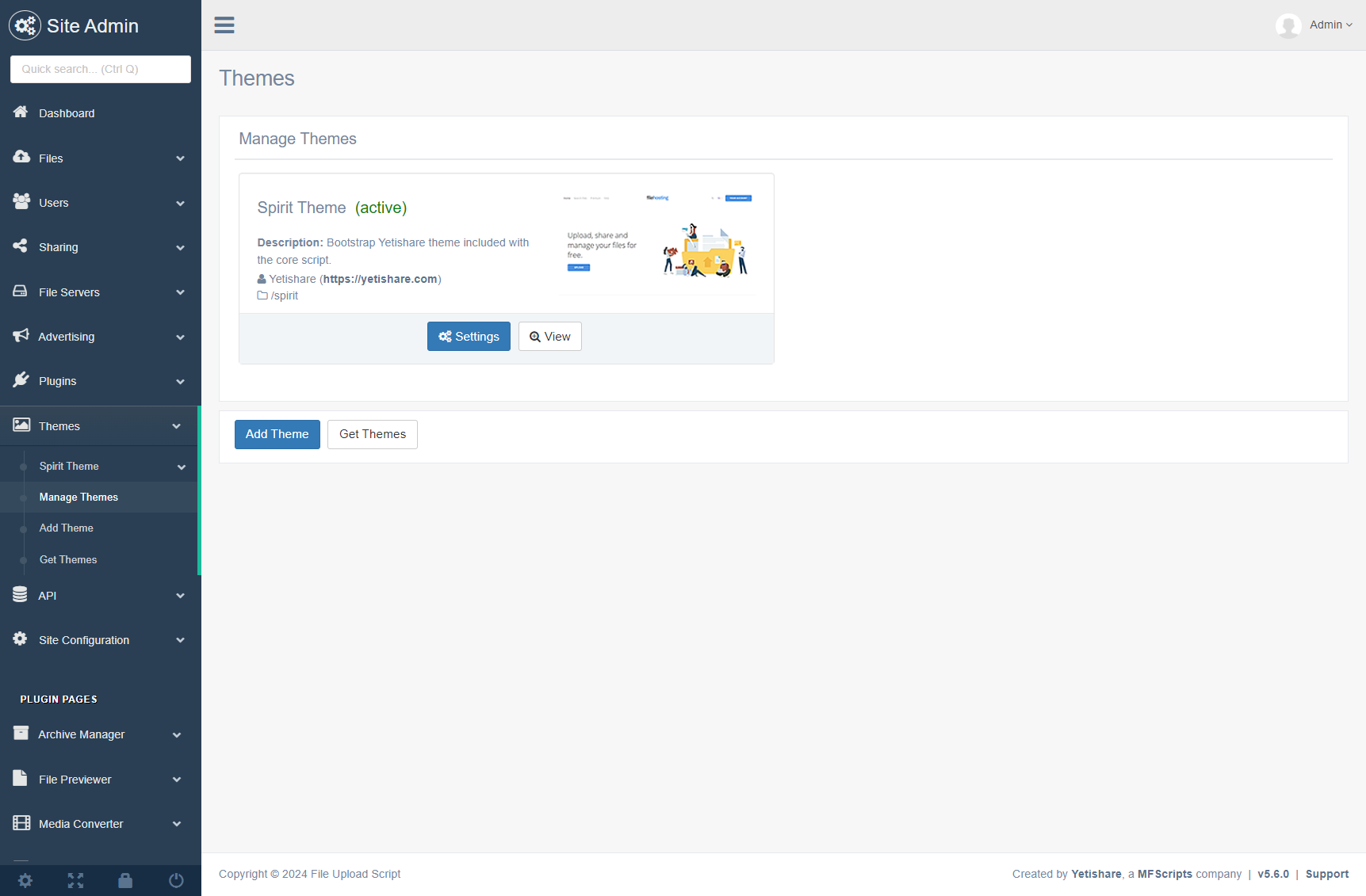 Upload and install themes built for Yetishare through the admin panel without FTP or code modifications.