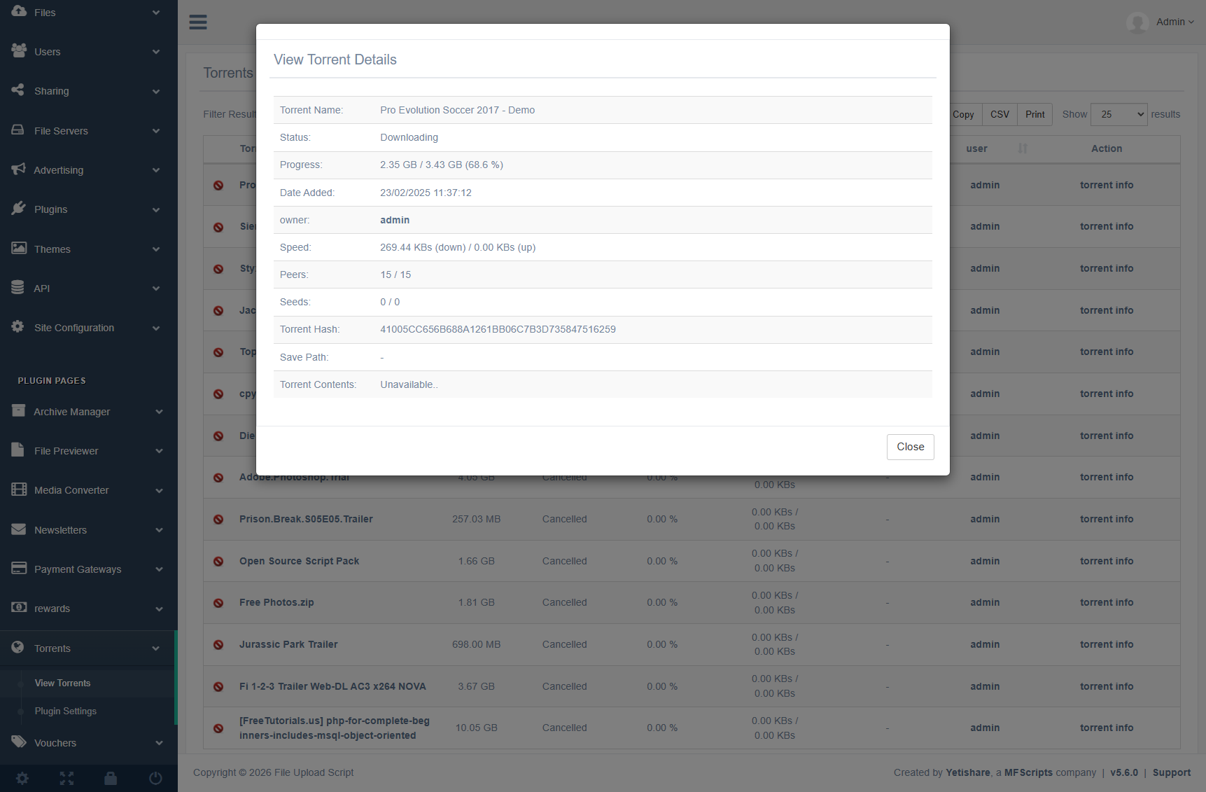 A cron task keeps Yetishare in sync with your chosen torrent engine.